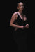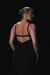 Designed to contour without constraint, the silhouette features a plunging V neckline, adjustable straps, and an open-back structure with gathered detailing at the lower spine — creating tension between exposure and control.